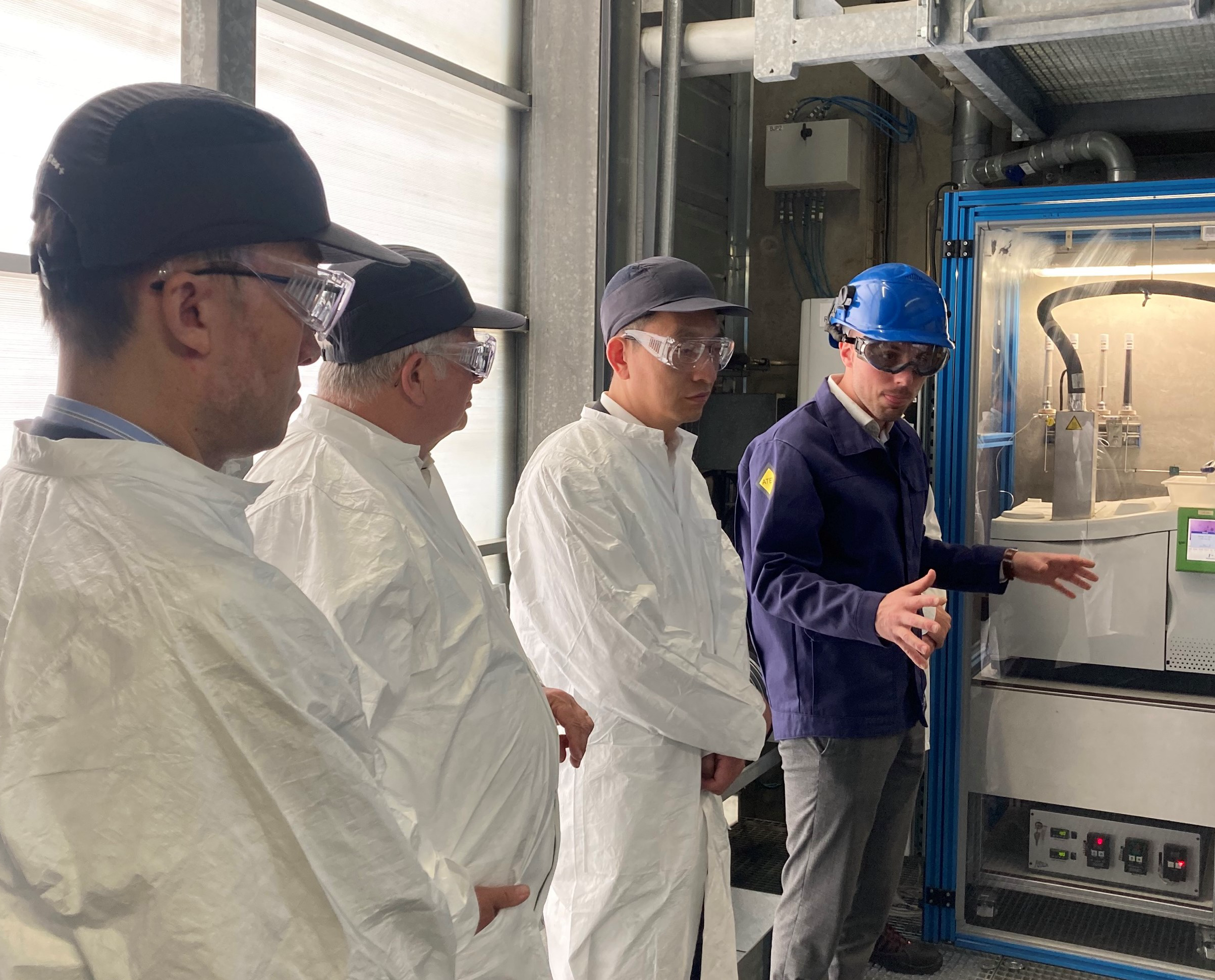 當天下午,郝志剛還參觀了Innov’ia于2023年3月15日投產的新工廠。Innov’ia系藍星安迪蘇旗下子公司,專業從事功能型粉沫制劑的配方設計與生產。新工廠投資3780萬歐元,已建成三條生產線,其中第一條生產線已投產,第二及第三條分別計劃在今年6月和11月投產。郝志剛一行參觀了工廠裝載場、原材料儲存區、霧化塔和控制室等區域,對新工廠的發展潛力和競爭優勢有了全面直觀的了解,并鼓勵團隊積極開拓中國市場,為企業可持續發展培育新動能。