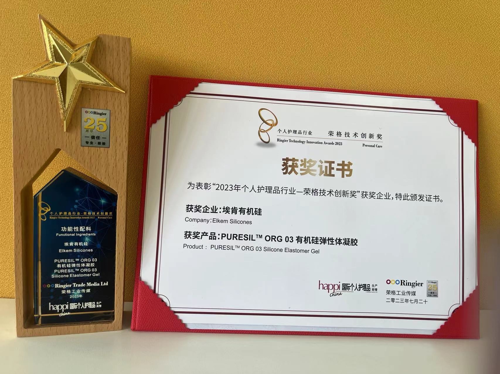 近日,2023榮格技術創新獎正式揭曉,藍星埃肯有機硅PURESIL? ORG 03和SILCOLEASE? EMULSION 902以優異的表現脫穎而出,分別榮獲個人護理品行業榮格技術創新獎和食品飲料行業榮格技術創新獎。