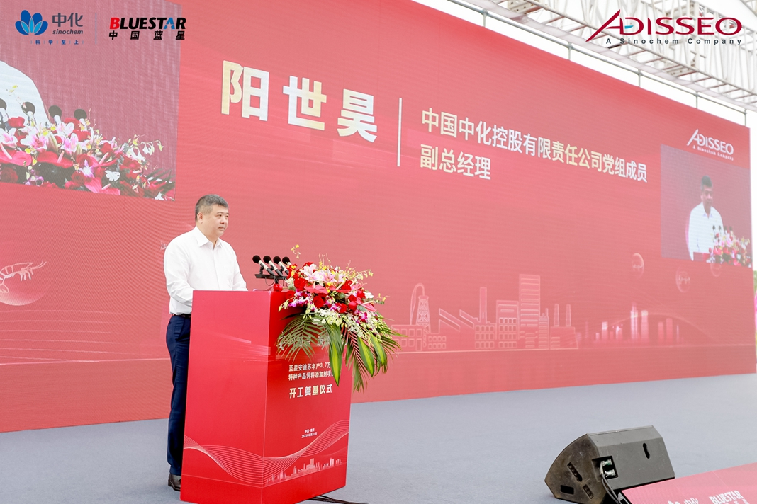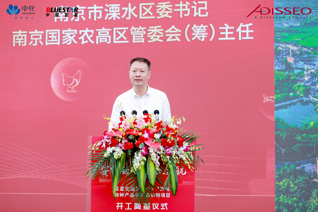 8月31日上午,藍(lán)星安迪蘇3.7萬噸/年特種產(chǎn)品飼料添加劑項目(以下簡稱FOSIC項目) 開工奠基儀式在位于南京溧水區(qū)的南京國家農(nóng)業(yè)高新技術(shù)產(chǎn)業(yè)示范區(qū)(以下簡稱“農(nóng)高區(qū)”) 舉行。中國中化副總經(jīng)理、黨組成員陽世昊,南京市委副書記、南京國家農(nóng)高區(qū)黨工委(籌) 書記沈文祖,溧水區(qū)委書記、南京國家農(nóng)高區(qū)黨工委(籌) 副書記管委會(籌)主任張?zhí)N,藍(lán)星公司黨委書記、董事長、藍(lán)星安迪蘇董事長兼CEO郝志剛等出席儀式并致辭。江蘇省委、南京市委市政府、溧水區(qū)委區(qū)政府主要領(lǐng)導(dǎo)及各相關(guān)部門負(fù)責(zé)人、企業(yè)代表等出席活動。