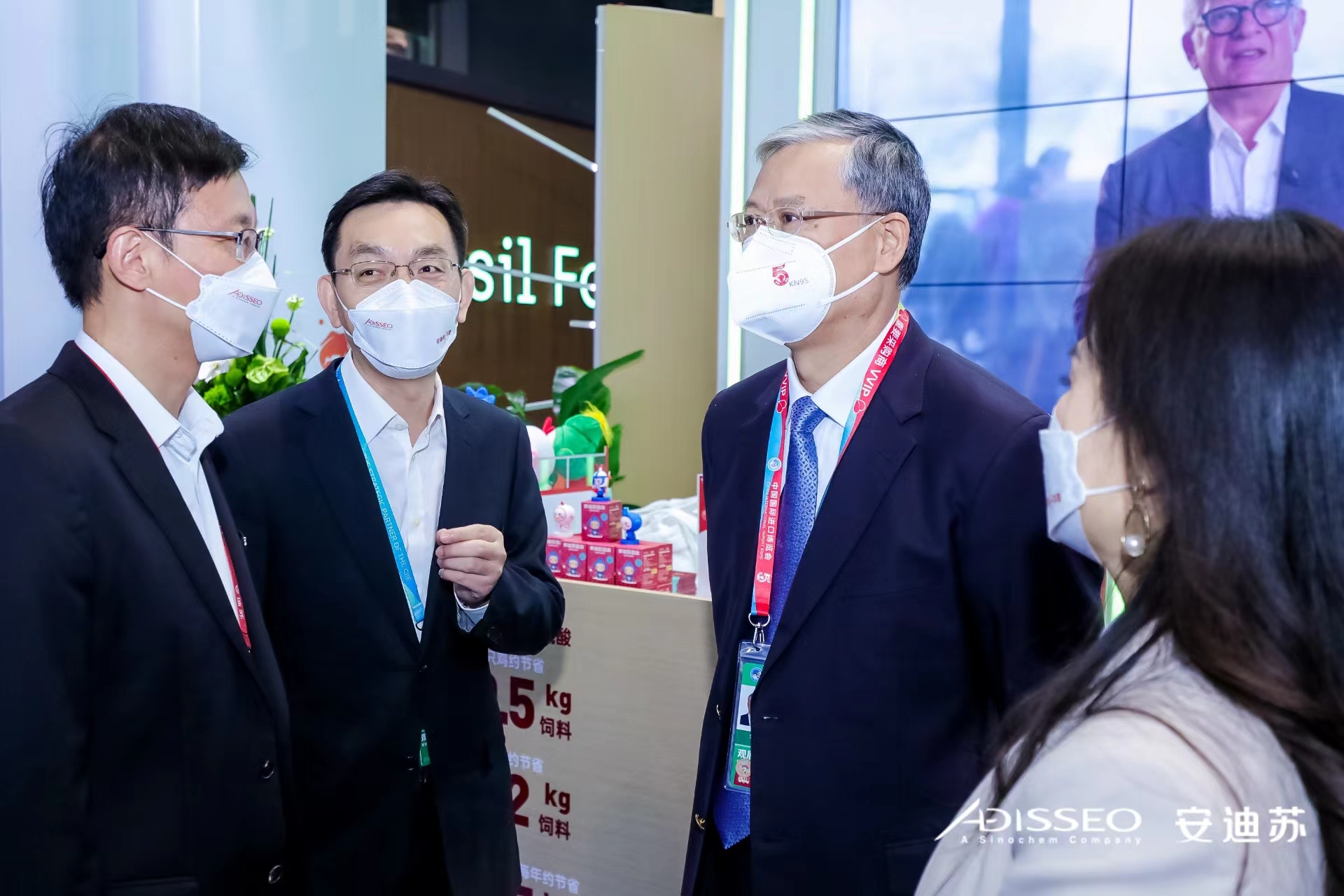 On November 5, the 2022 China International Import Expo (“CIIE”) kicked off in Pudong, Shanghai. As an enterprise with a global layout and international operation, Bluestar has participated in CIIE for the fifth consecutive year, and its overseas subsidiaries Elkem Silicones and Adisseo, as senior exhibitors of CIIE, together to continuously release the great vitality. With the determination to develop and grow in China, they share future development opportunities with global partners and jointly compose a new movement of openness, accommodation, mutual benefit, and win-win results. Li Fanrong, Chairman of the Board and Secretary of the Leading Party Group of Sinochem Holdings, Yang Shihao, Vice President and Member of the Leading Party Group of Sinochem Holdings, and their delegation visited the booth of Bluestar overseas subsidiaries and carefully inquired about their products.